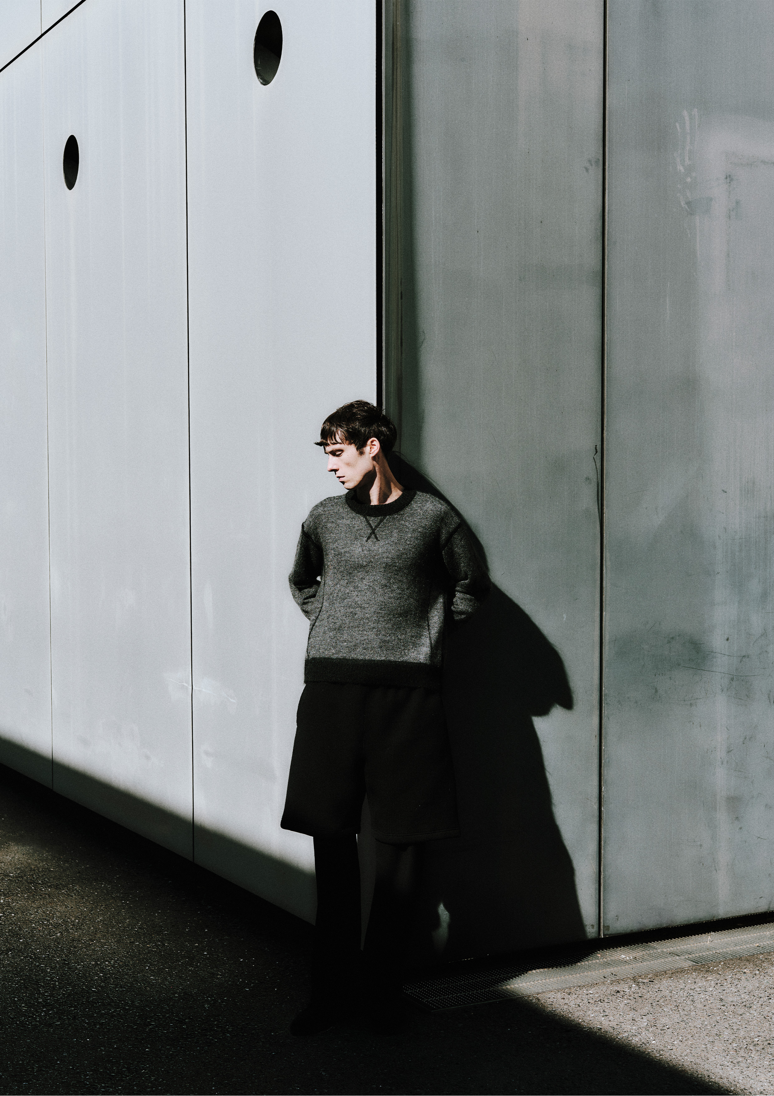 ニットウェアの新しい可能性と価値観をコンセプトに、従来のニットウェアを再解釈したアプローチや、横編みと丸編みの融合、日常生活と共存したデザインの探求を行う。