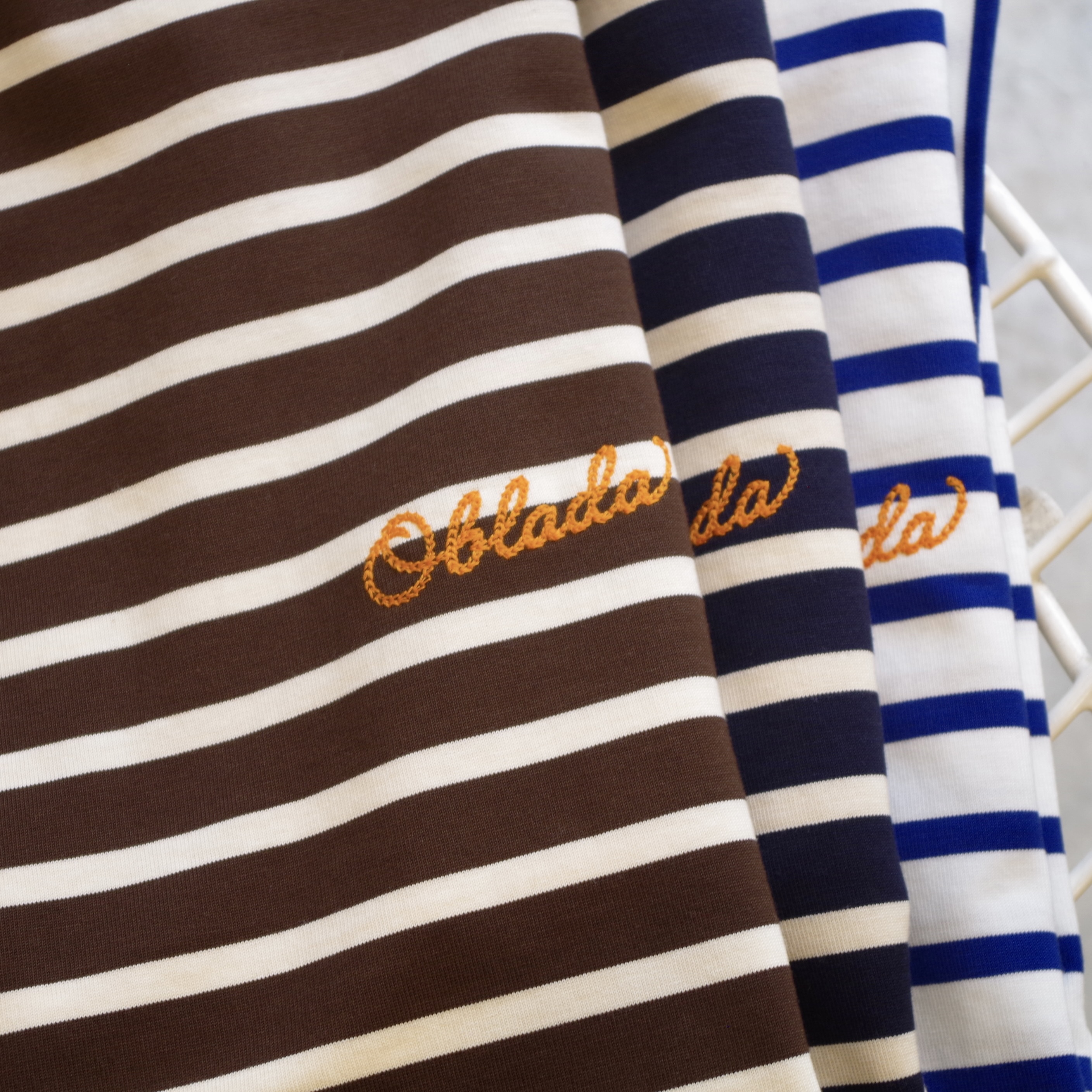 直線構成のガンジーボーダーから生まれる独特のフォルムと、 ゆったりした優しいサイズ感が魅力です。