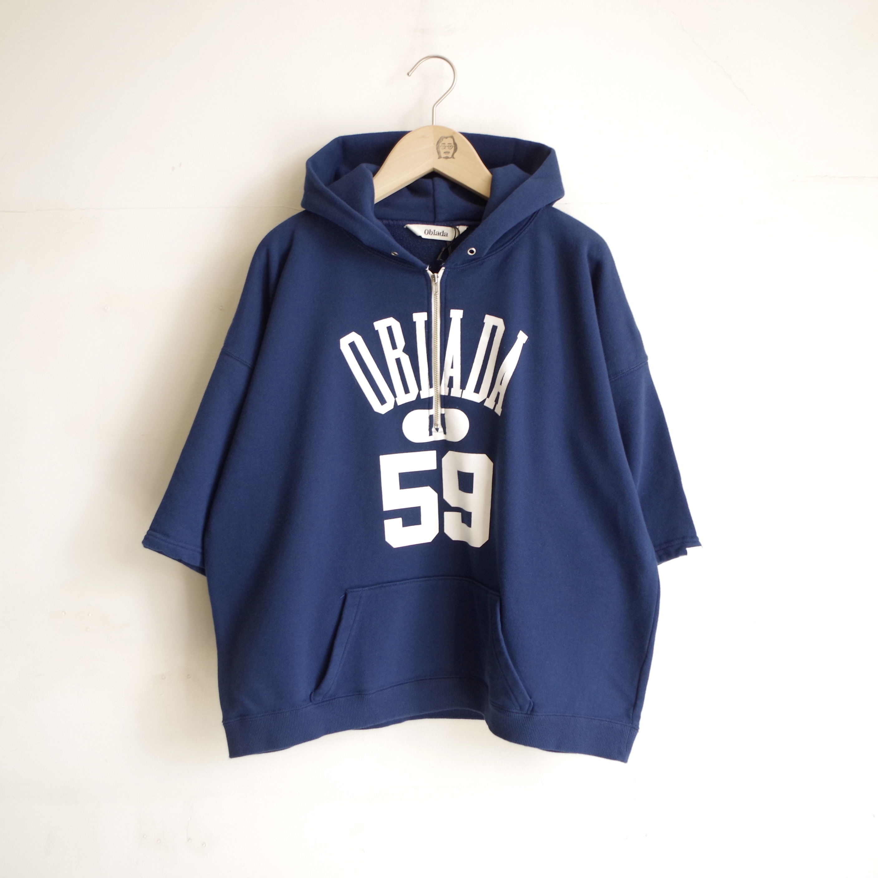古着のスウェットをリメイクしたような雰囲気の、ハーフジップフーディー。