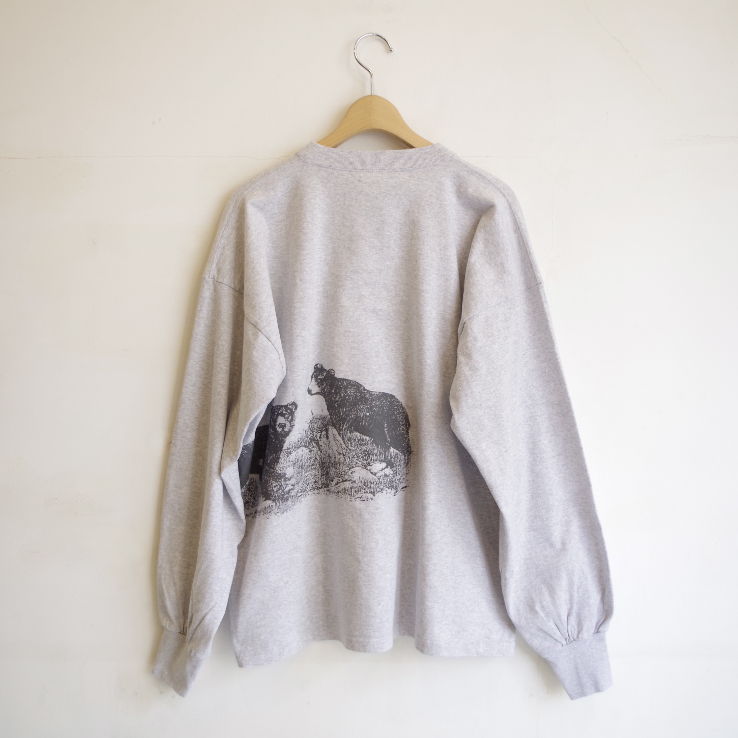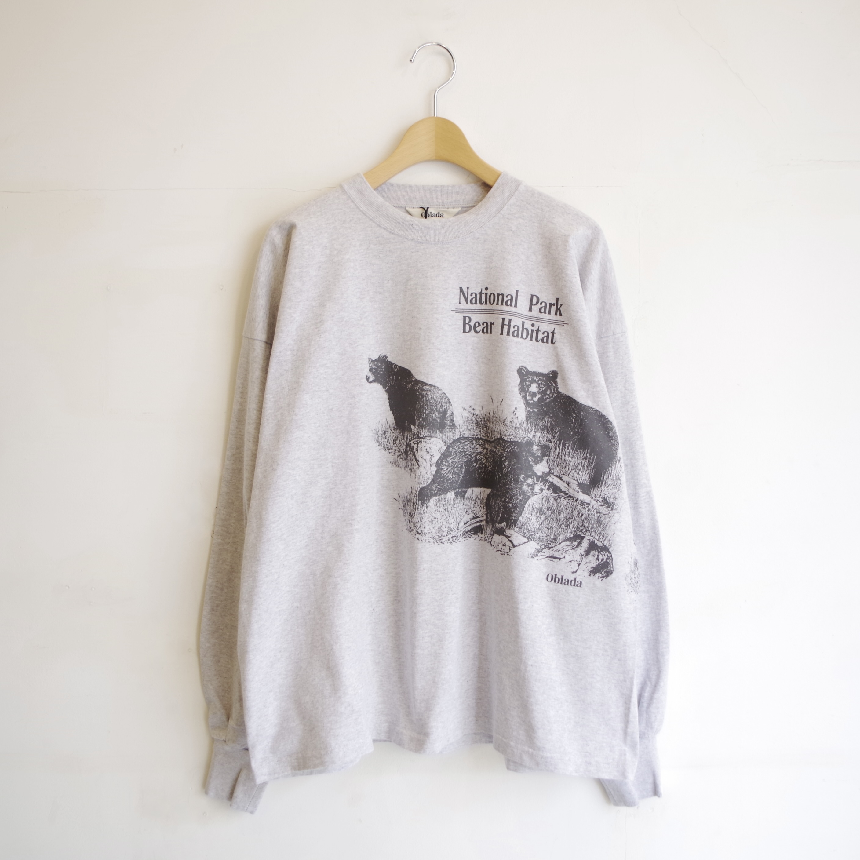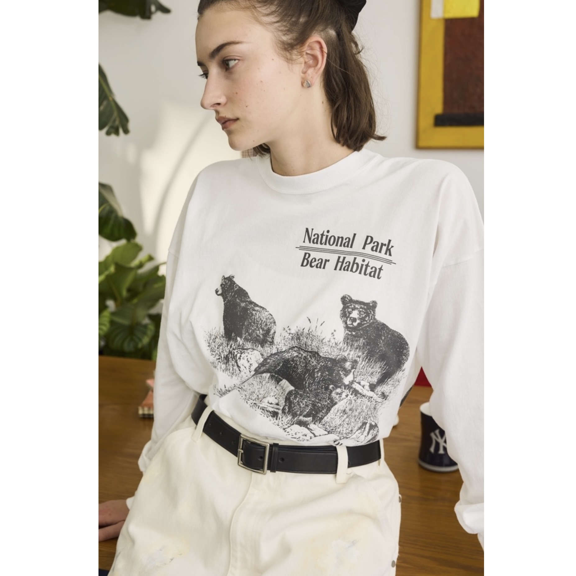 古着でありそうで、意外と無いこの感じ。 丸胴ボディを使用し、フロントからバックまで ひと繋がりのプリントもポイントです◎
