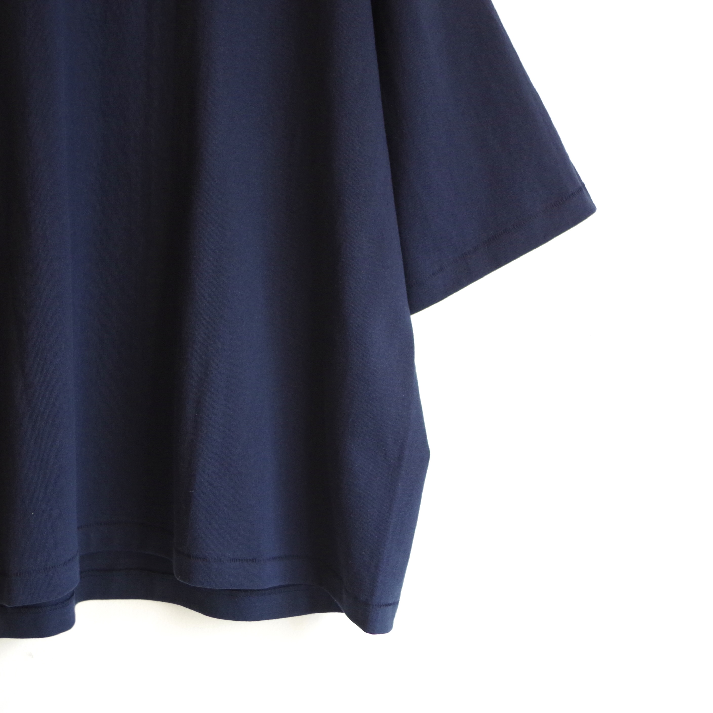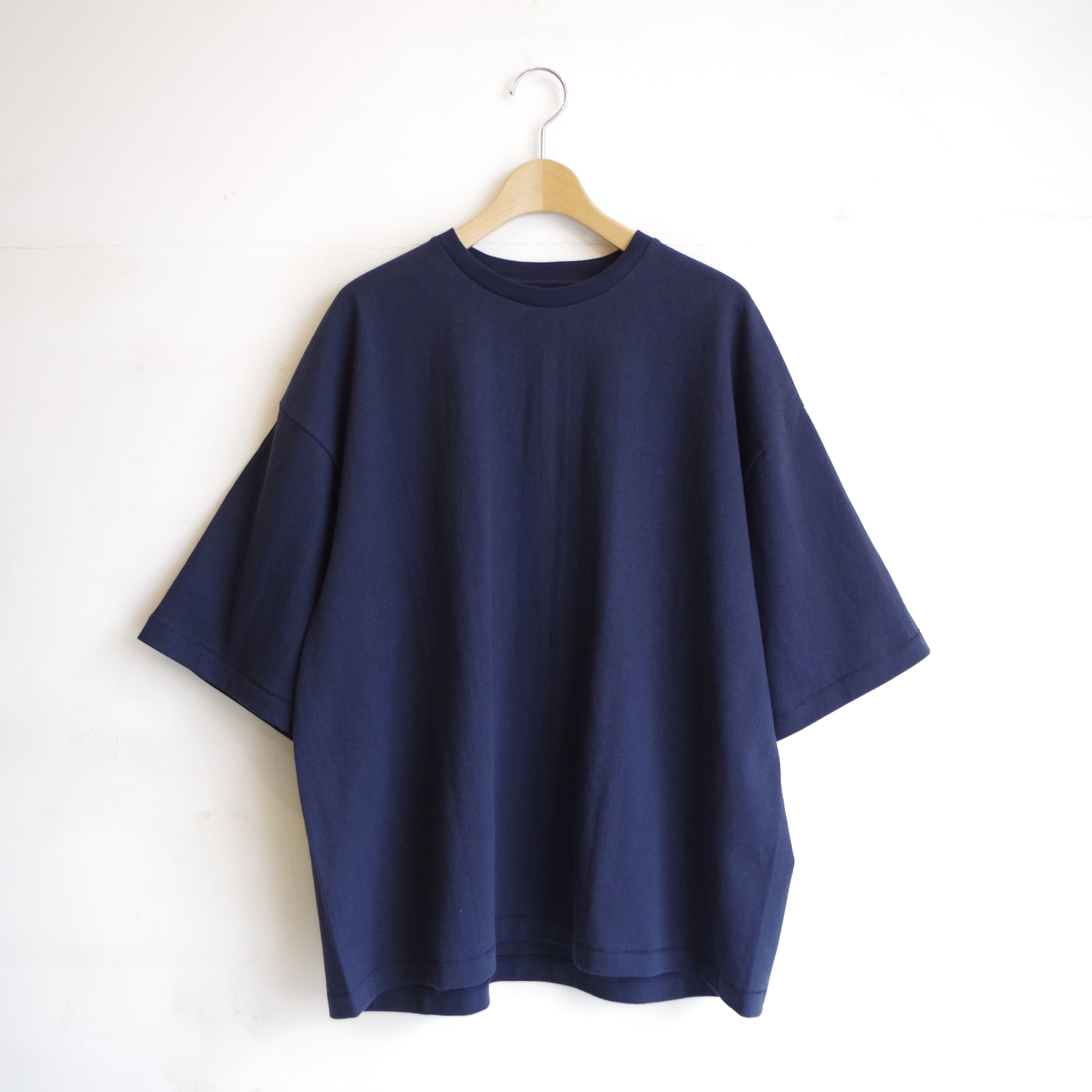 しっかりとしたコットンボディに、程よくゆとりのある身幅と短めの着丈。 シンプルながら、バランスの良さが際立つ一枚です。