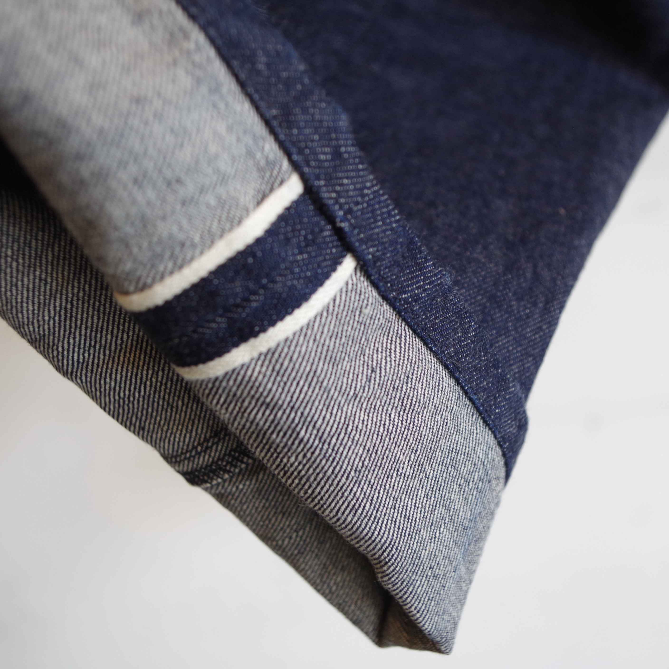 旧式シャトル織機で織り上げた14ozのセルヴィッチデニムを使用。
